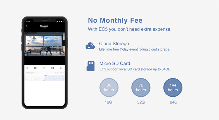 - Multi Storage Options - Cloud Storage & Local MicroSD Card Storage (Up to 256GB)