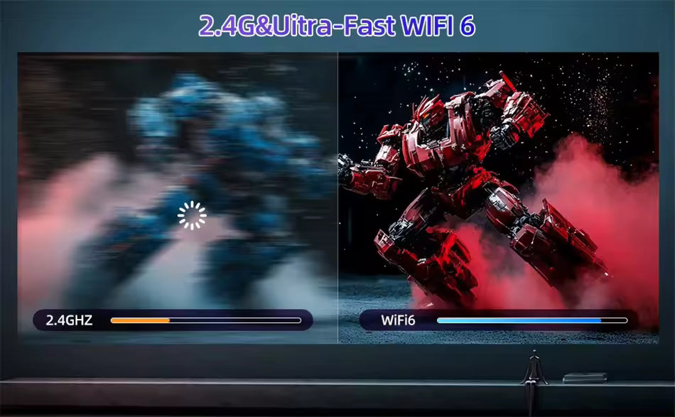 O Mini Projetor Portátil TecxShop combina potência e portabilidade, com resolução HD (suporte até 4K), Wi-Fi 5G e som embutido, para experiências únicas em casa ou ao ar livre.